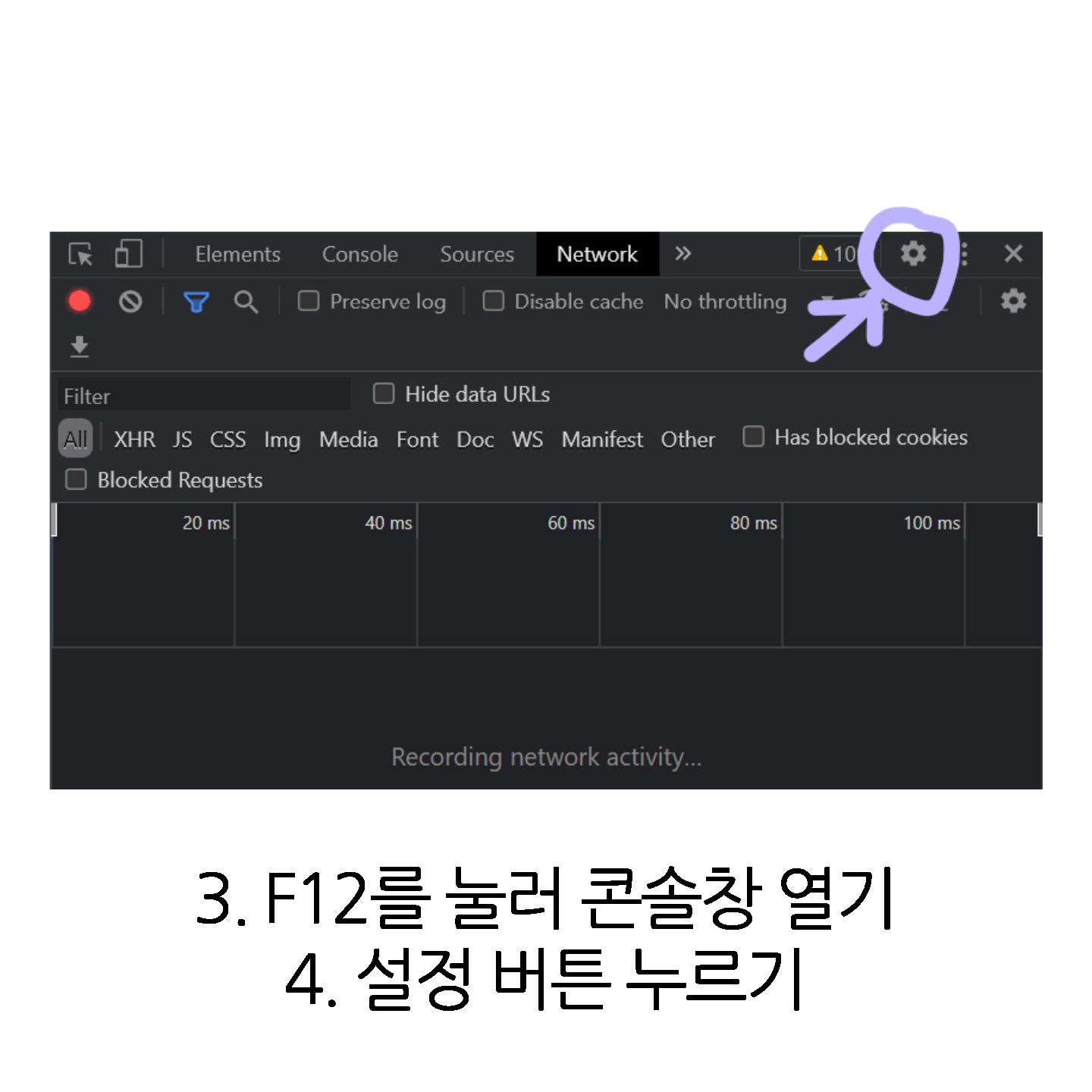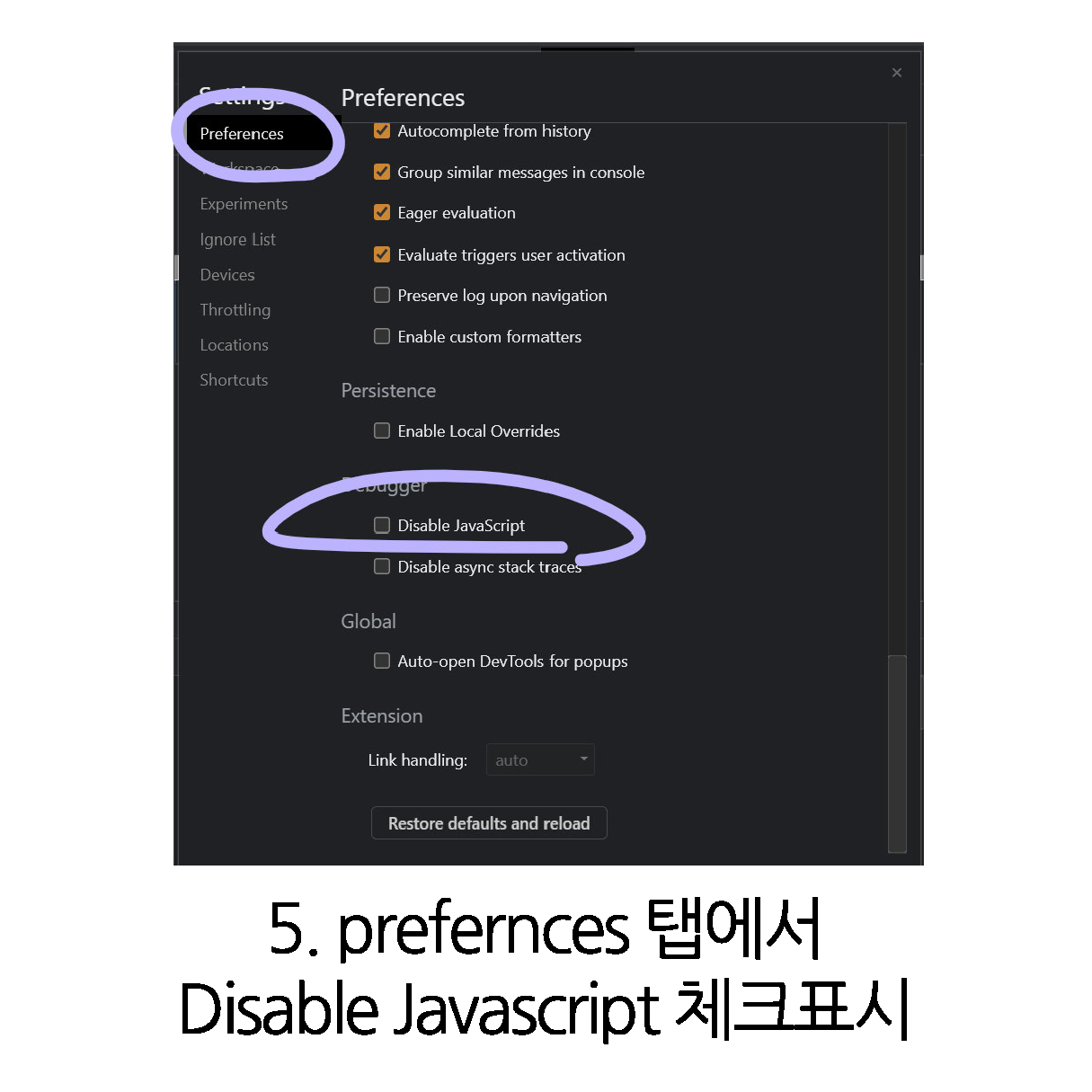 잠시 뒤 JavaScript를 다시 켜야하므로 크롬 개발자도구 창은 닫지 않는 것을 추천합니다.