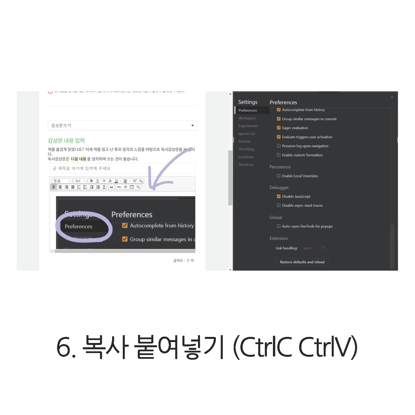 추가로, 대부분의 복사 붙여넣기를 막는 코드가 JavaScript로 동작합니다. 다른 사이트에서도 복사 붙여넣기가 막혀 있다면 위 방법을 시도해보세요.