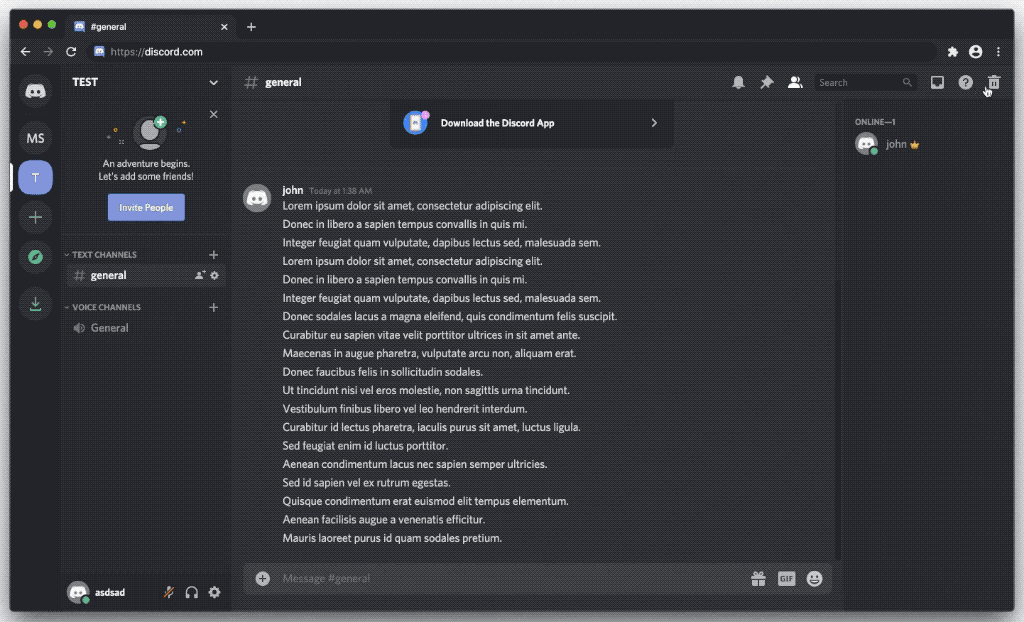 Discord를 웹브라우저에서 열고 (앱이 아니라!!) 삭제하고 싶은 개인 메세지가 떠 있는 채널(대화방)으로 가자.