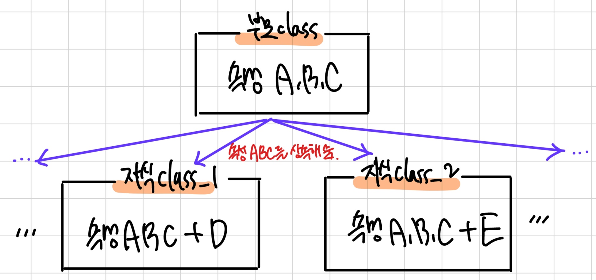 프로그래머들은 이러한 귀찮은 문제를 해결하기 위해 여러 기능 중 공통되는 부분을 부모 클래스로 지정해 처리할 수 있다.
