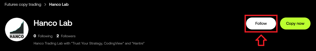STEP 02: OKX 내의 Hanco Lab 카피트레이딩 페이지로 접속하여 팔로우한다.